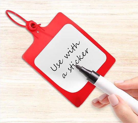 100 red plastic tags + permanent marker for all your needs.