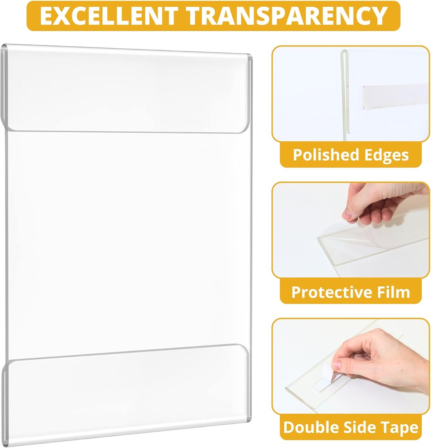 Easy Tag Acrylic Sign Holder 8.5 x 11 Wall Mount, Clear Sign Holders with Adhesive Strips, Wall Document Holder Plastic, Perfect Business & Store Sign Holders, No Drilling